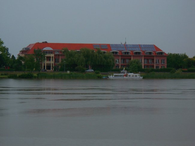 átkelőhajó a Kékduna Wellness Hotel kikötőjében